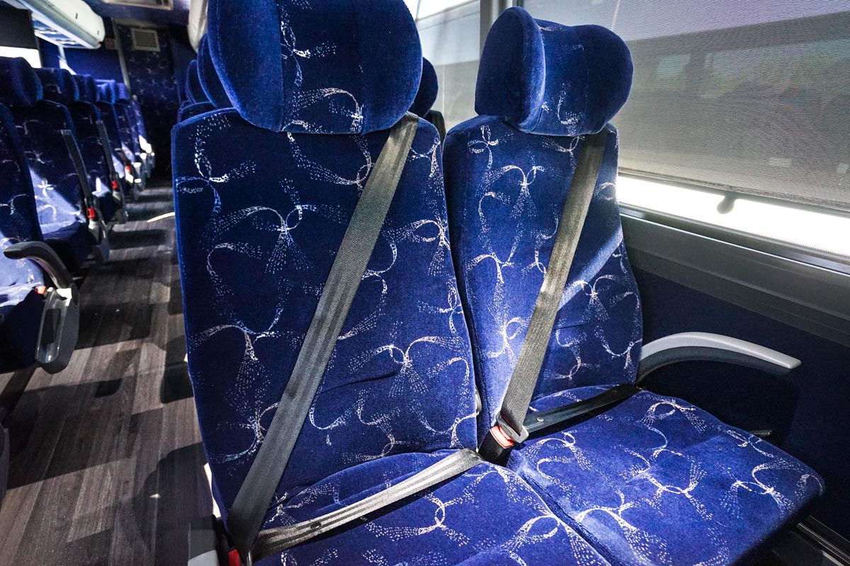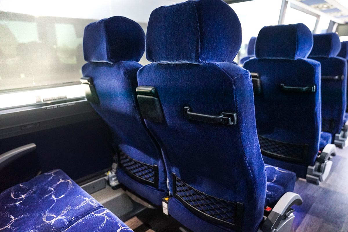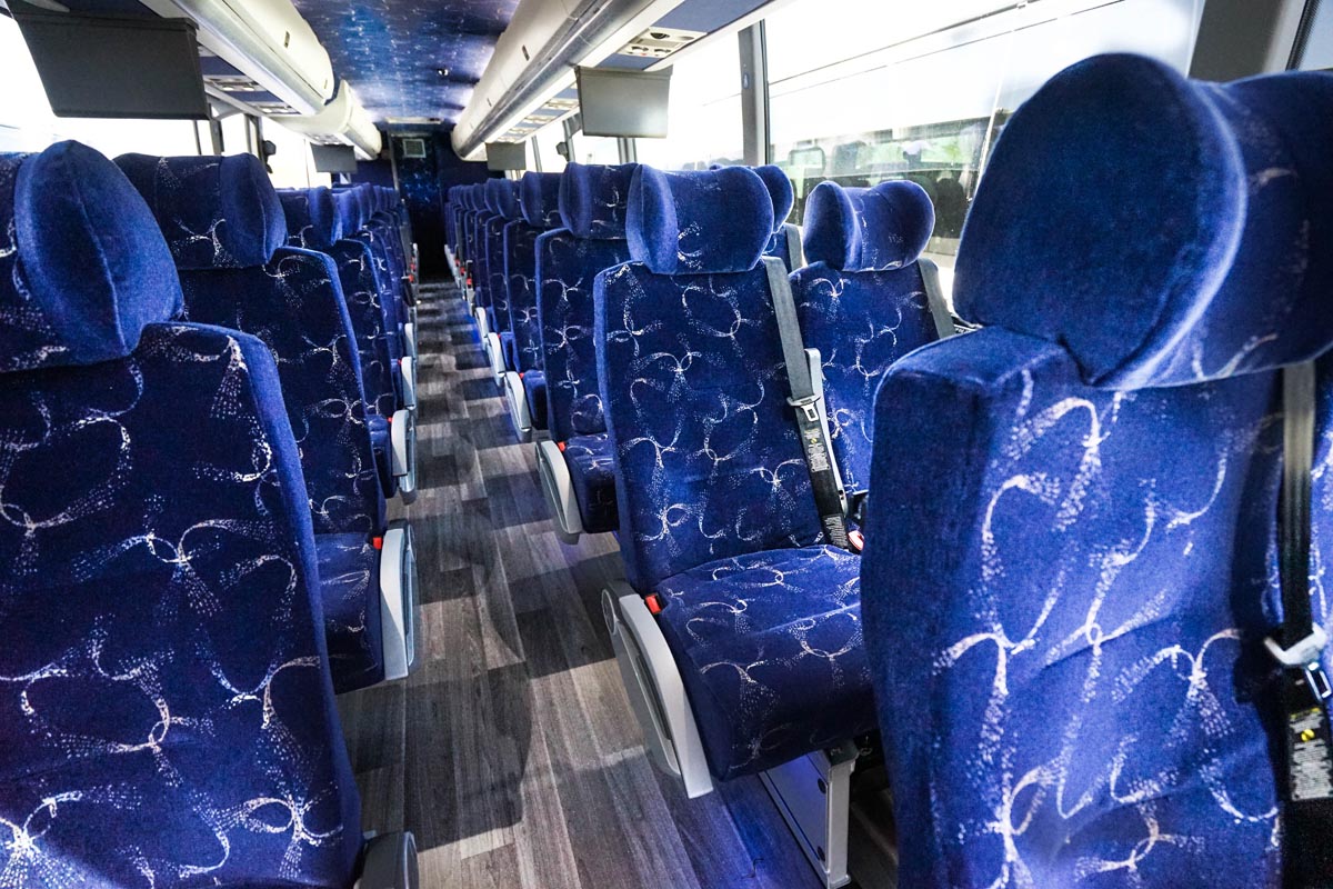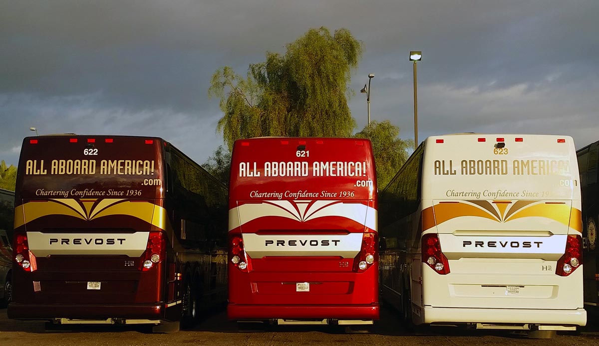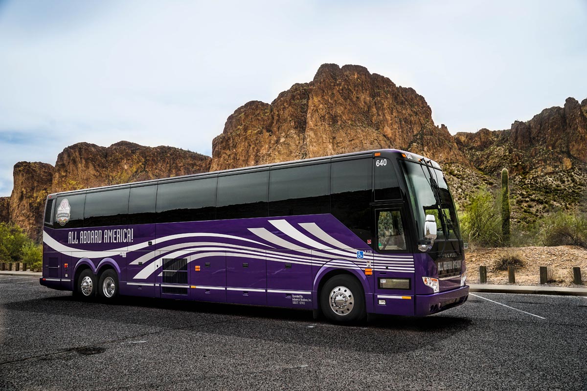 Our full-size Prevost luxury touring motorcoaches are built for comfort, with reclining seats and large windows for seeing the most of our beautiful country.